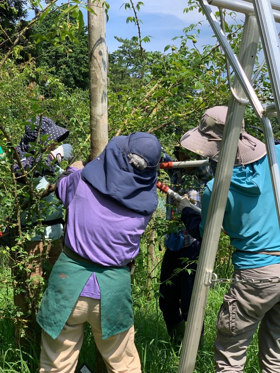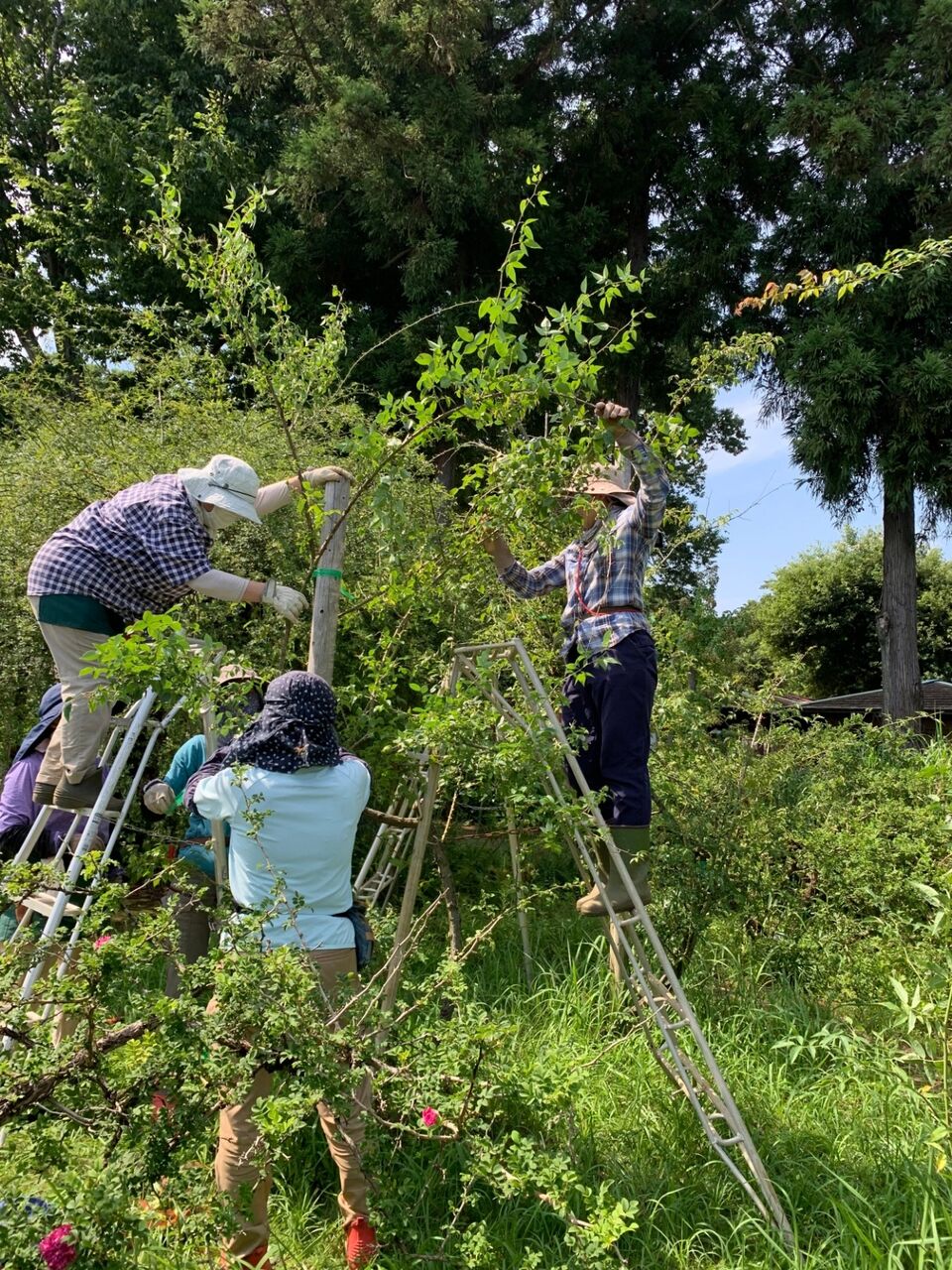 午前中は大きく育ってしまった雑草をバッサバッサと取りまくり、午後からはこの時期に珍しい誘引作業をしました。