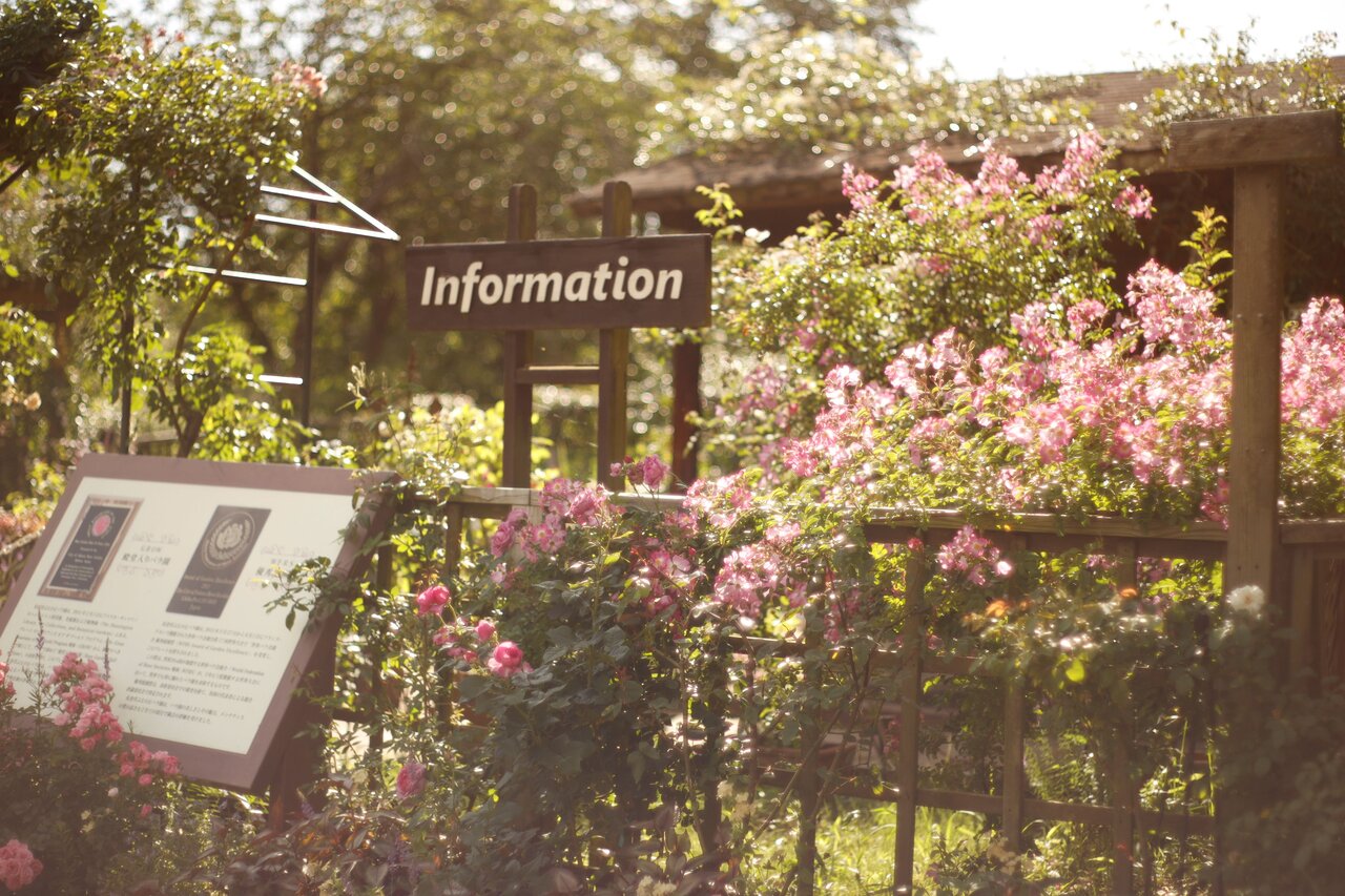 園内の広い道を奥に進み日本のバラコーナーへ