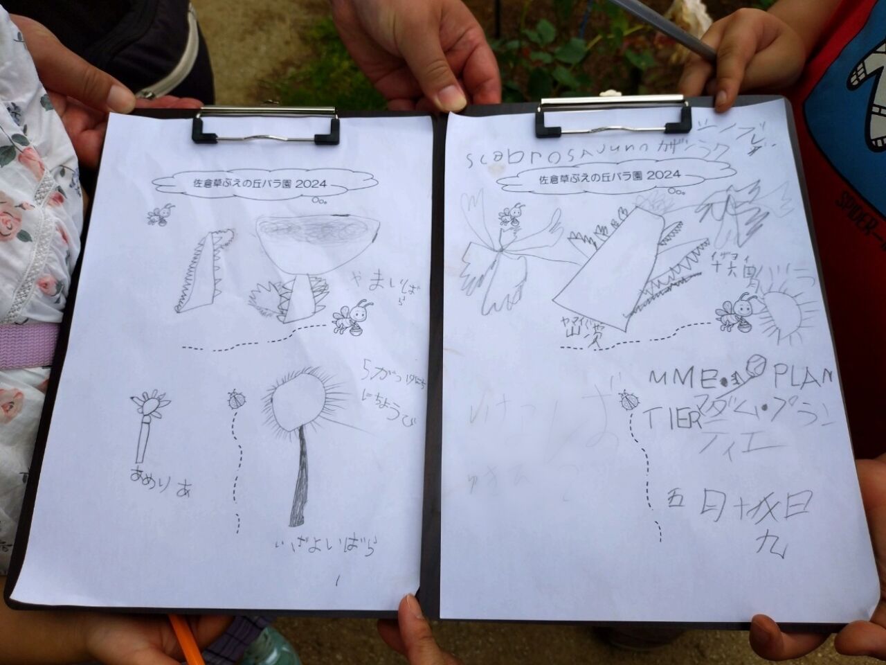 いいですね~😊 紙を目一杯使ってダイナミック!トゲトゲした感じ、チクチクしたイザヨイバラのつぼみ、バラの名前をがんばって英語で書いたり、描いたバラの前で写真を撮ったり、気がつけば1時間も経ってしまいました。 バラはトゲがあるから危ない、そんな先入観を持ちがちですが、お子さんとも結構楽しめるものですね