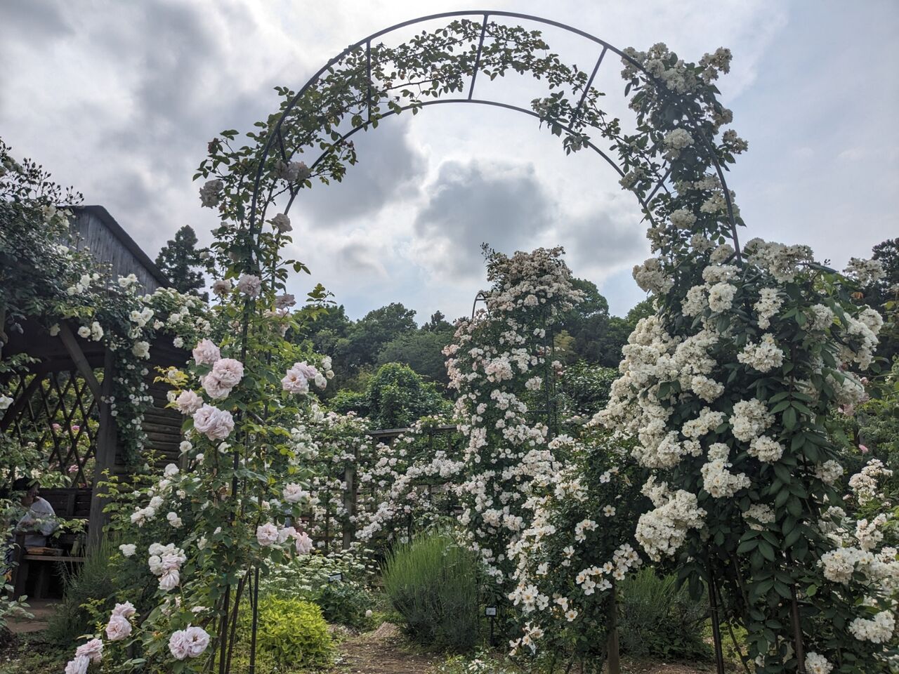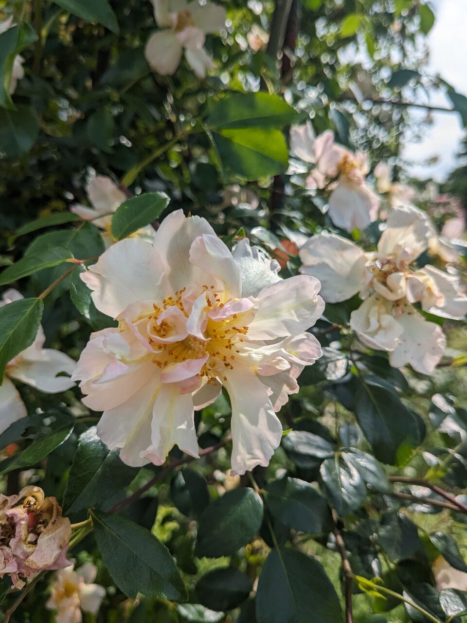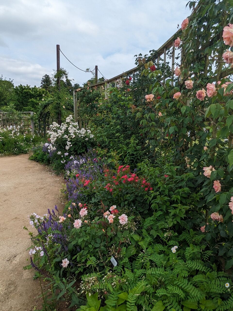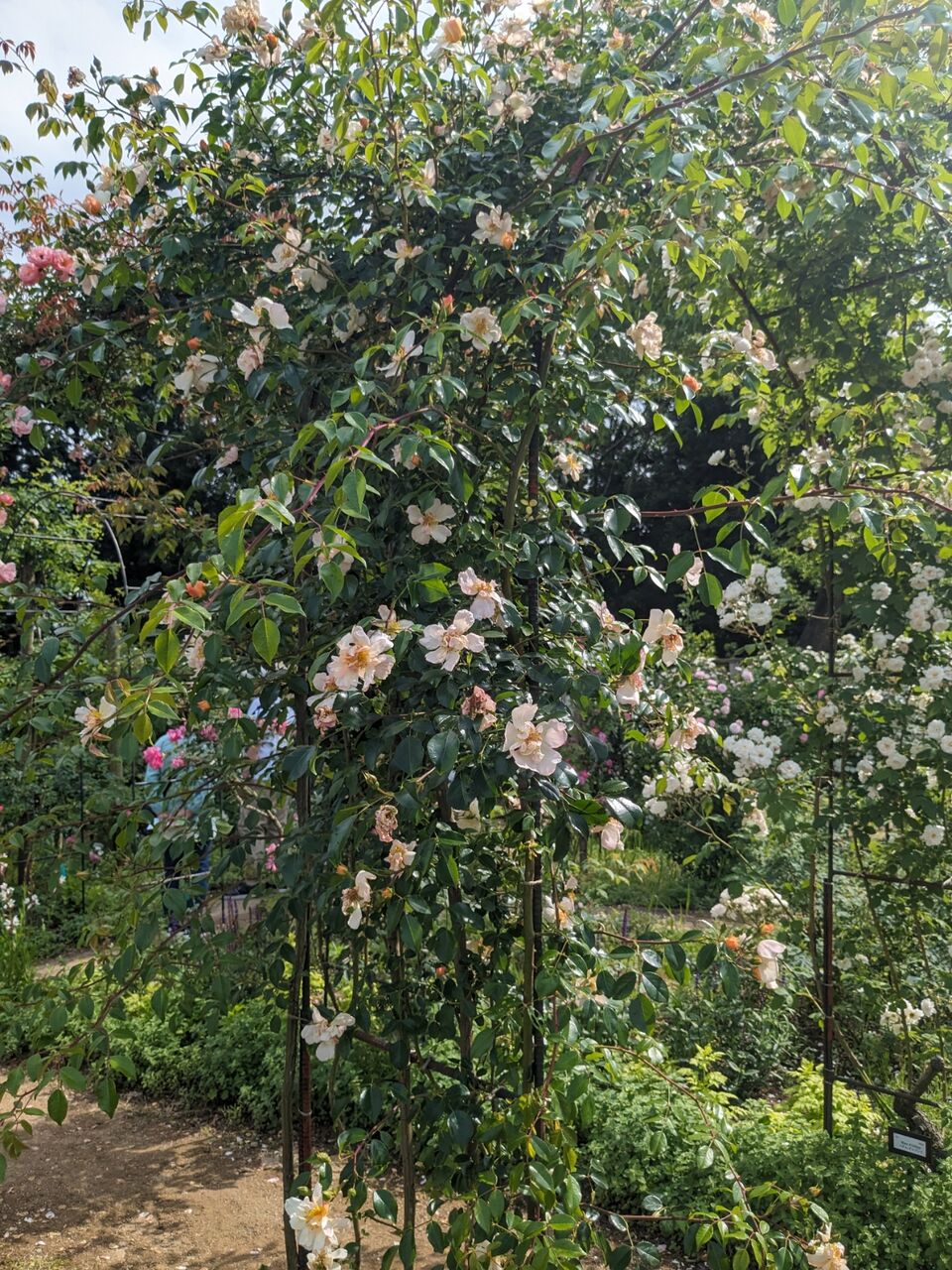 小道を歩き、つるバラを見上げて誘引のときの事を思い出したり、花の芯を覗き込んでみたり…遅咲きのバラも咲き始めまた違った表情になってきました。