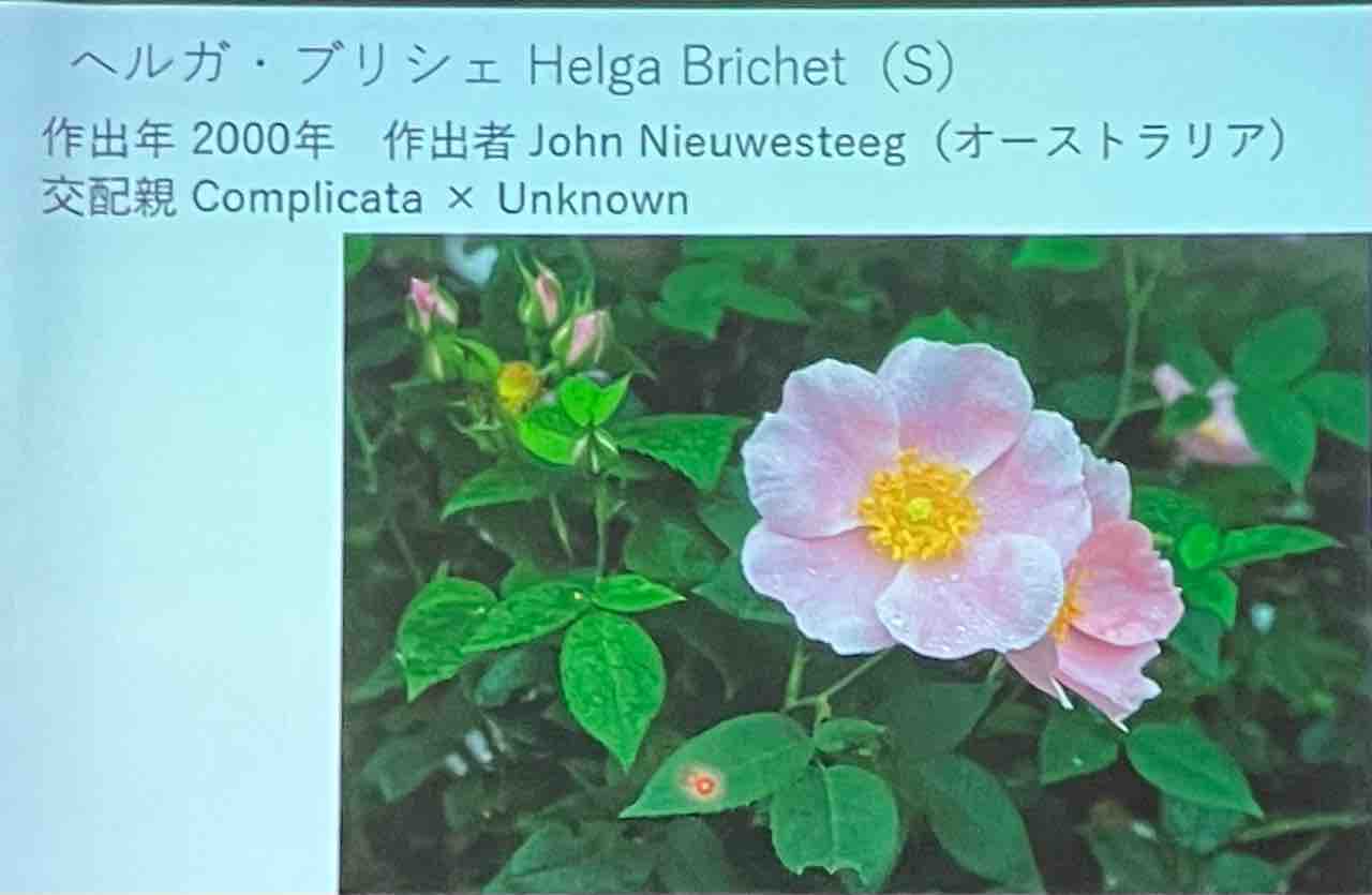 アーリーモダンの勉強会 2024年08月10日 10:00 お盆間近の金曜日まぶしいくらいの真夏の空息苦しいくらいの今日も猛暑日ですさて、本日の作業はバックヤードの水やりの後オールドローズ園の除草と午後はスタッフの小林さんによるアーリーモダンの勉強会でしたモダンローズとは「ラ・フランス」1867年以降のバラアーリーモダンのバラとは19世紀後半から20世紀前半に作出されたバラの事です オールドローズの面影を残すか弱く、手が掛かるが故に育てがいのあるバラ歴史のコーナーに植栽されているアーリーモダンのバラを系統立てて詳しく説明していただきました❇︎・ ❇︎ ・❇︎ ・❇︎・ ❇︎それと世界的に有名なヘルガ プリシェさんから寄贈されたバラが植栽されているサンタマリアの谷ですが、2019年に研修に行かれたイタリアのサンタマリアのヘルガさんとのお話もありました残念ながら夫のアンドレさんは今年、亡くなられたそうですなかなかバラの難しい話は苦手ですが、 楽しい勉強会でしたありがとうございました 「イベント・講習会」カテゴリの最新記事 < 前の記事次の記事 >