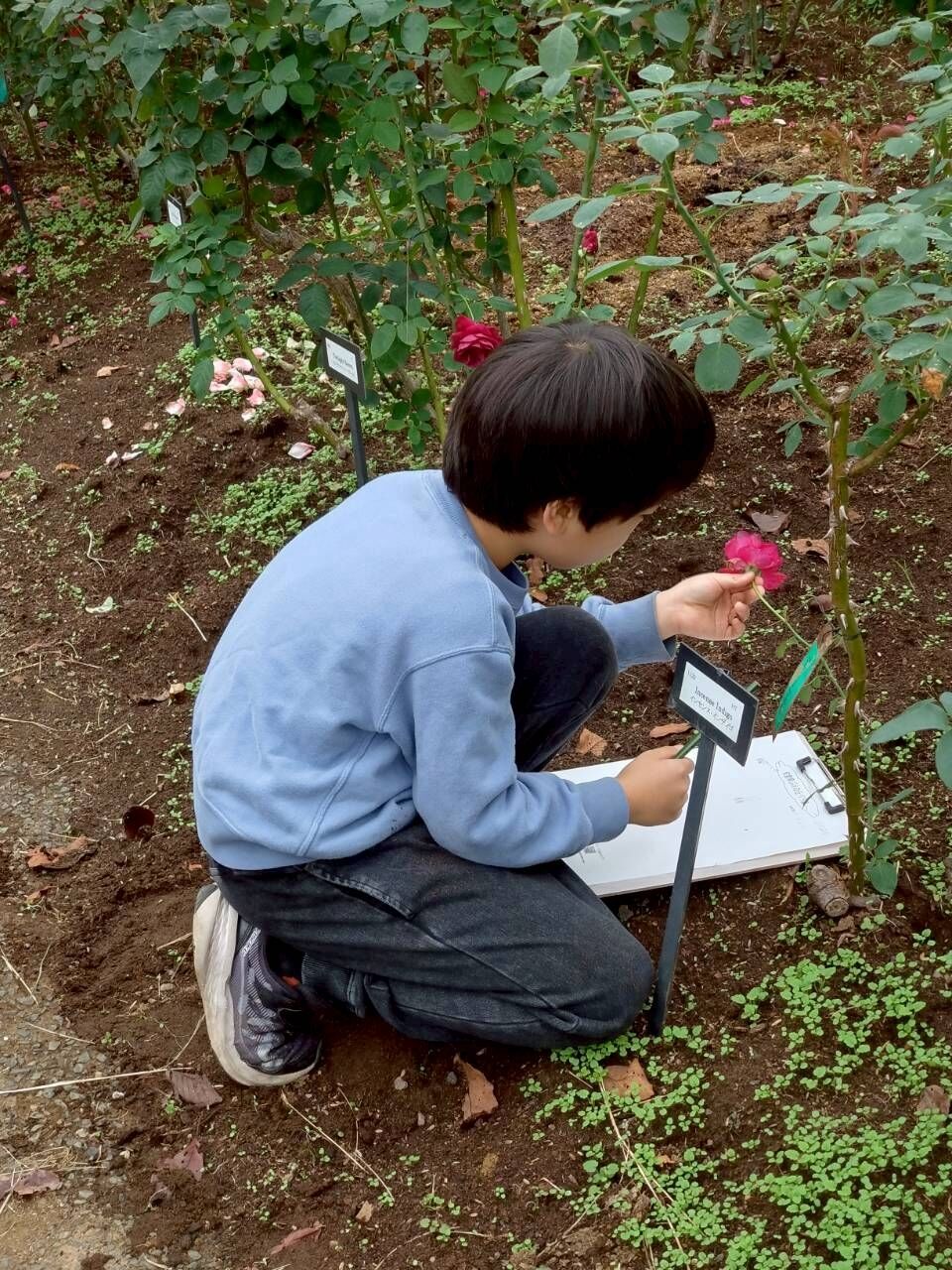 バラの花を全方位からじっくり観察してる様子、こういう姿を見られるのがこの観察会の嬉しいところです