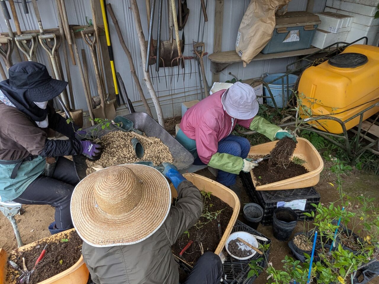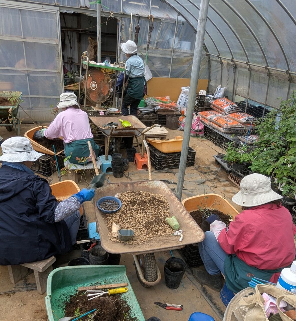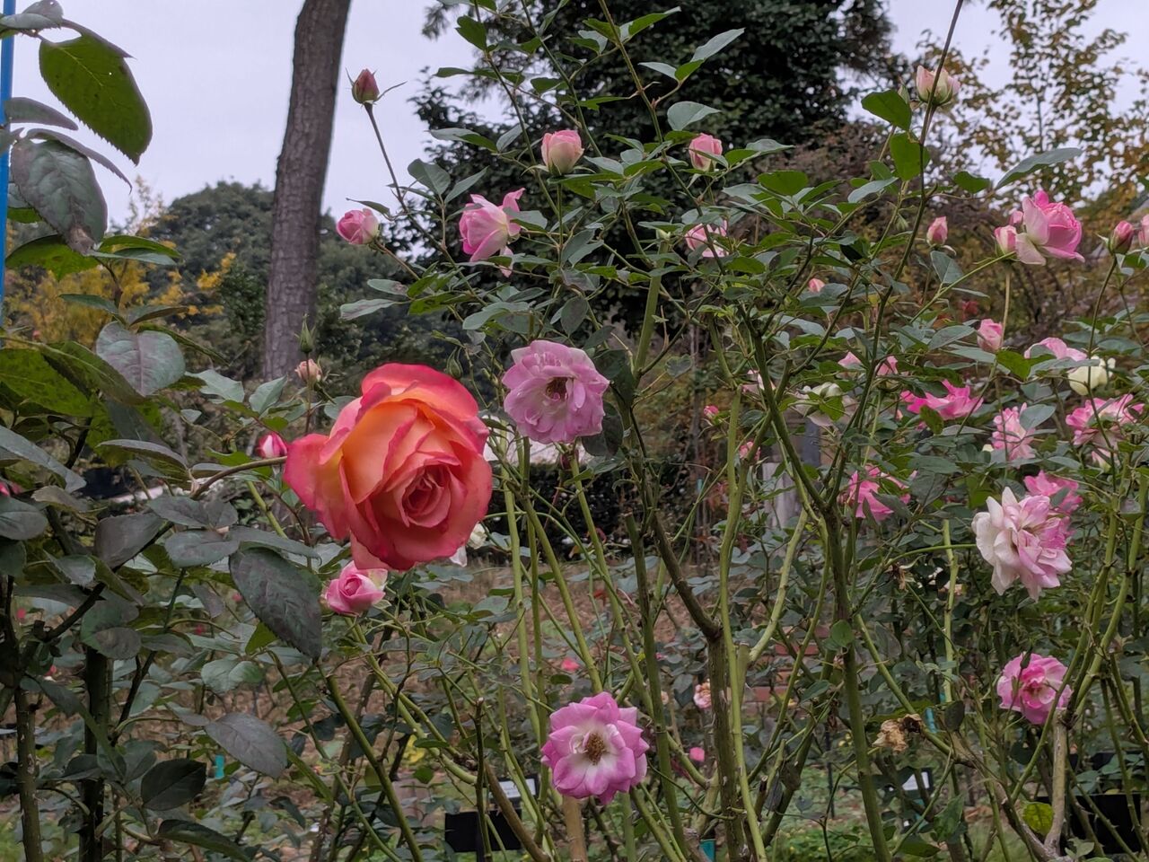 今日はせっせと鉢替え 2025年11月14日 09:30 肌寒い薄曇りの木曜日バックヤードにて鉢替えをしましたスタッフさんから、じっくり説明を受け確認をしながら進めました1つずつ根や上部の枝ぶりが違うのでそのバランスとるのに悩みました植え替えたバラ達が元気に育ちますように草ぶえの丘では木に絡んだツタが紅葉してました帰りは静かな園内を散歩、省三コーナーにて「朝雲」が素敵な秋色でした💕お疲れ様でした😊 「バックヤード」カテゴリの最新記事 < 前の記事次の記事 >