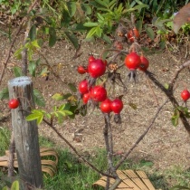 ひんやりした空気の木曜日 朝は小雨が降っていましたが、草ぶえの丘には元気な姿がありました。秋の風物詩「お芋掘り」にやってきた幼稚園児達です。 お芋畑に行くにはみんなバラ園の中を通るのだけど、そこにバラが咲いていることに気づいてくれたかなぁ〜ローズヒップも ...